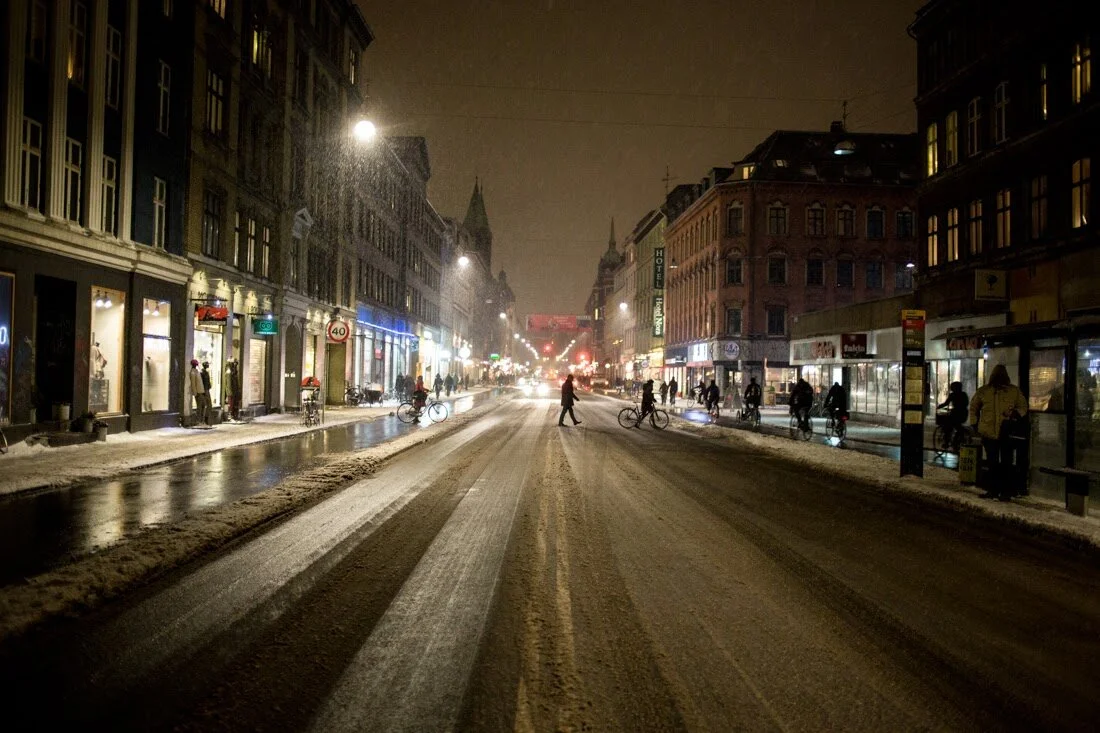 I went out frome work and took a stroke down nørrebrogade, down to nørreport to get a train home. But on my way home the light and the snow made me thing of pictures instead of the cold. i took my trusty canon 35 mm out of my warm bag, and out in the cold night.